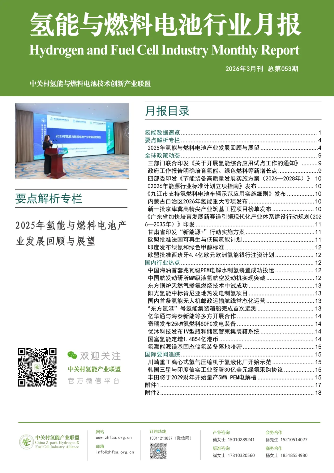 2026年3月底,由中关村氢能产业联盟编制的《中国氢能与燃料电池产业发展研究报告2026》在联盟第三届北京氢能产业大会暨京津冀氢能产业发展峰会上正式发布,并获得了业内人士及各大媒体的广泛关注。