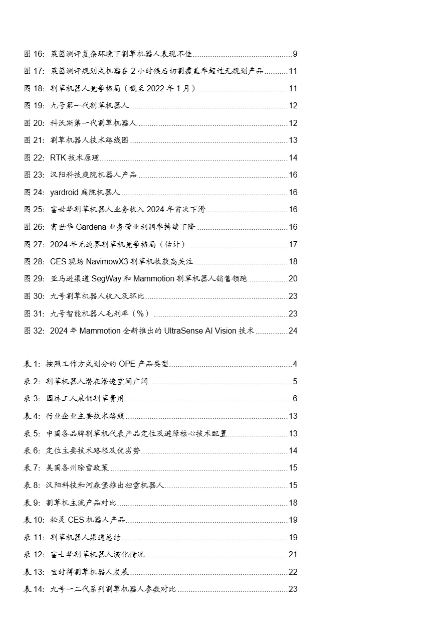 • 技术路线已定:RTK+视觉成主流,2024为爆发元年:行业正从“埋线式”向“无边界”升级,RTK+视觉方案凭借高精度、免布线、适应复杂环境等优势成为主流。九号、松灵(Mammotion)、科沃斯等中国品牌率先落地该技术,推动产品放量。