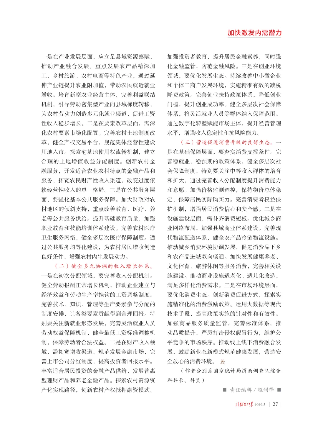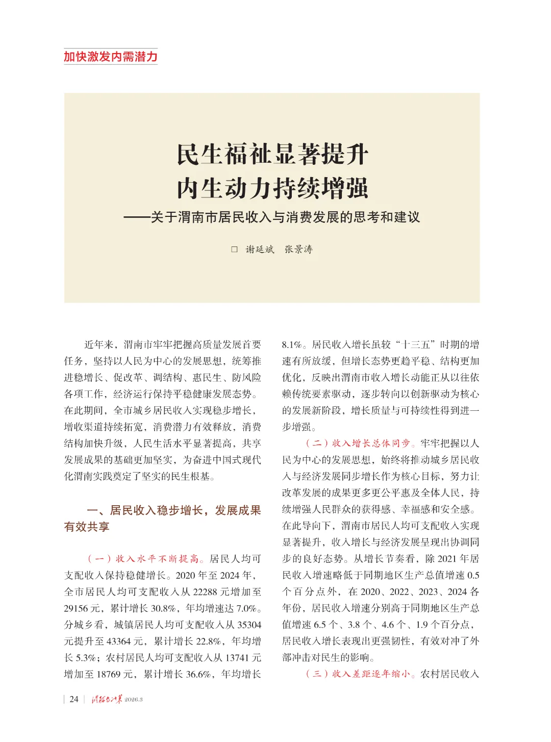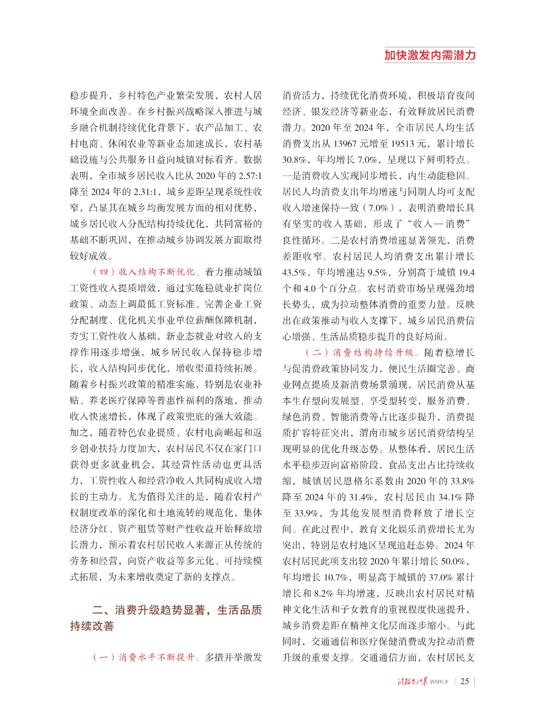 近日,国家统计局渭南调查队一篇调研报告《民生福祉显著提升 内生动力持续增强——关于渭南市居民收入与消费发展的思考和建议》被省委《调研与决策》杂志2026年第4期刊载。