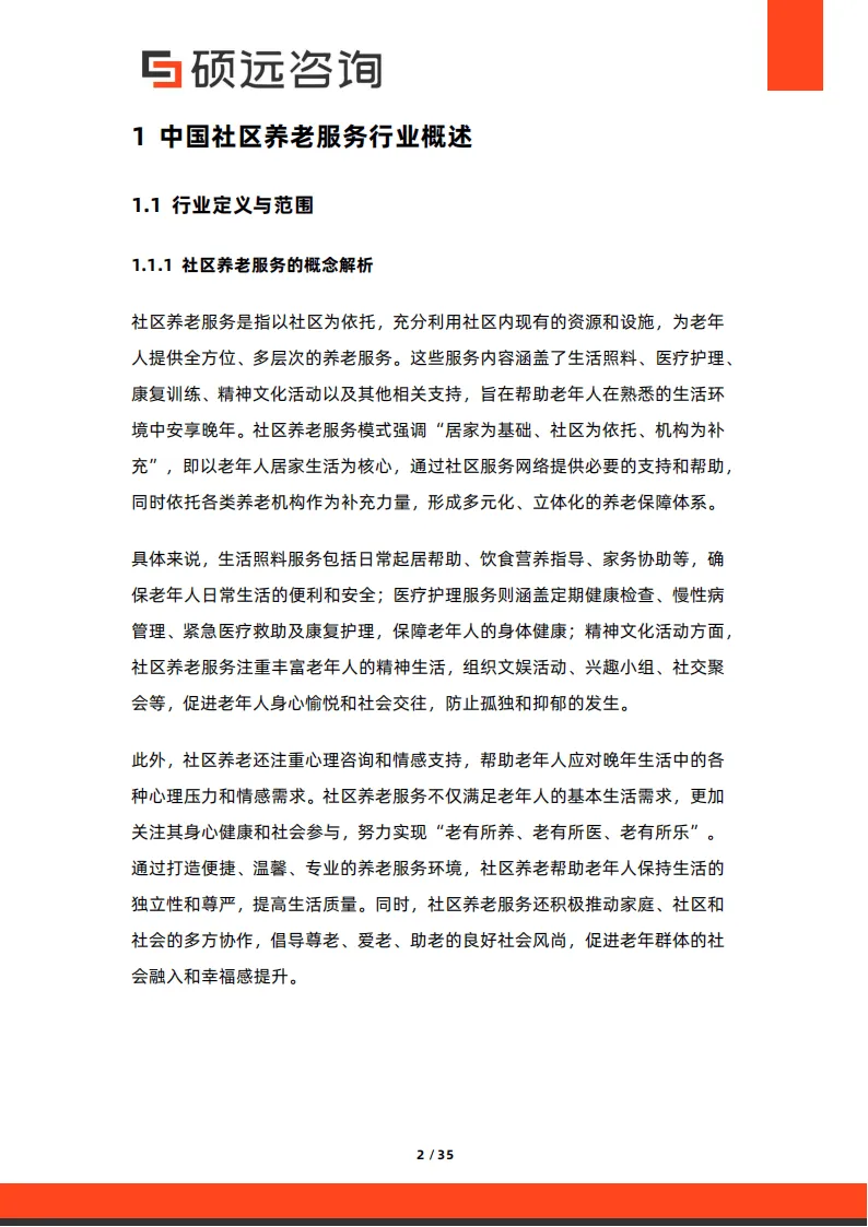 中国社区养老服务以社区为依托,遵循“居家为基础、社区为依托、机构为补充”模式,为60岁及以上老年人提供生活照料、医疗护理、精神文化等综合服务,重点覆盖独居、空巢、失能失智及高龄群体,是我国养老保障体系的重要组成部分。