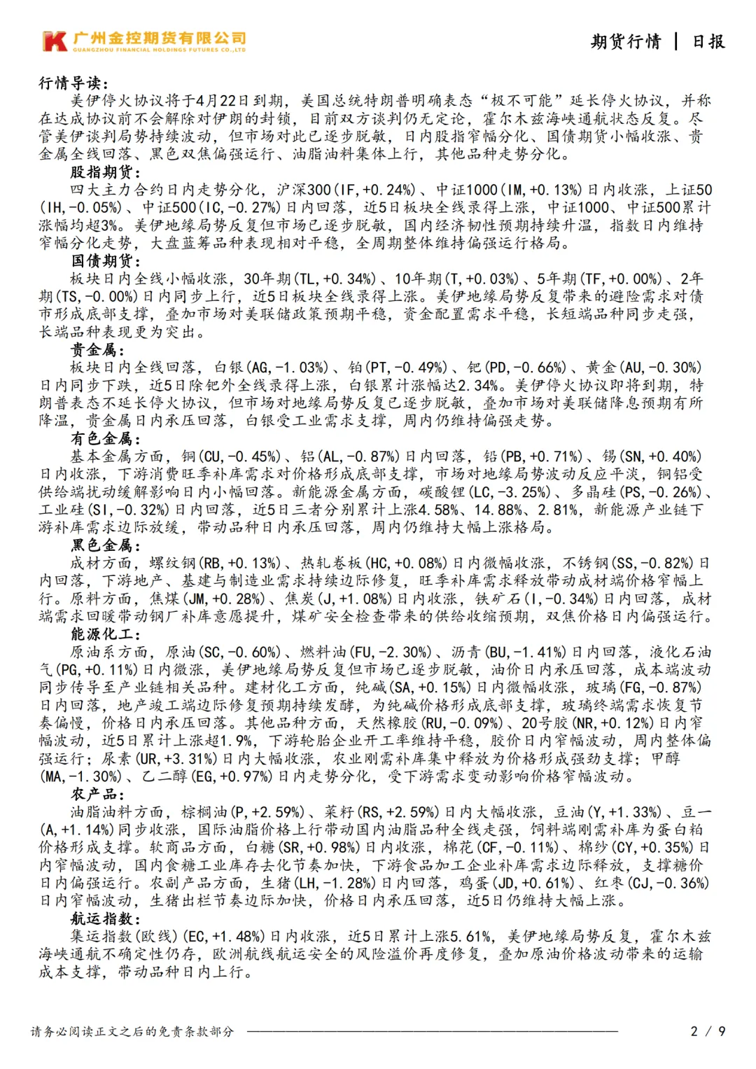 广州金控期货市场行情日度报告20260421