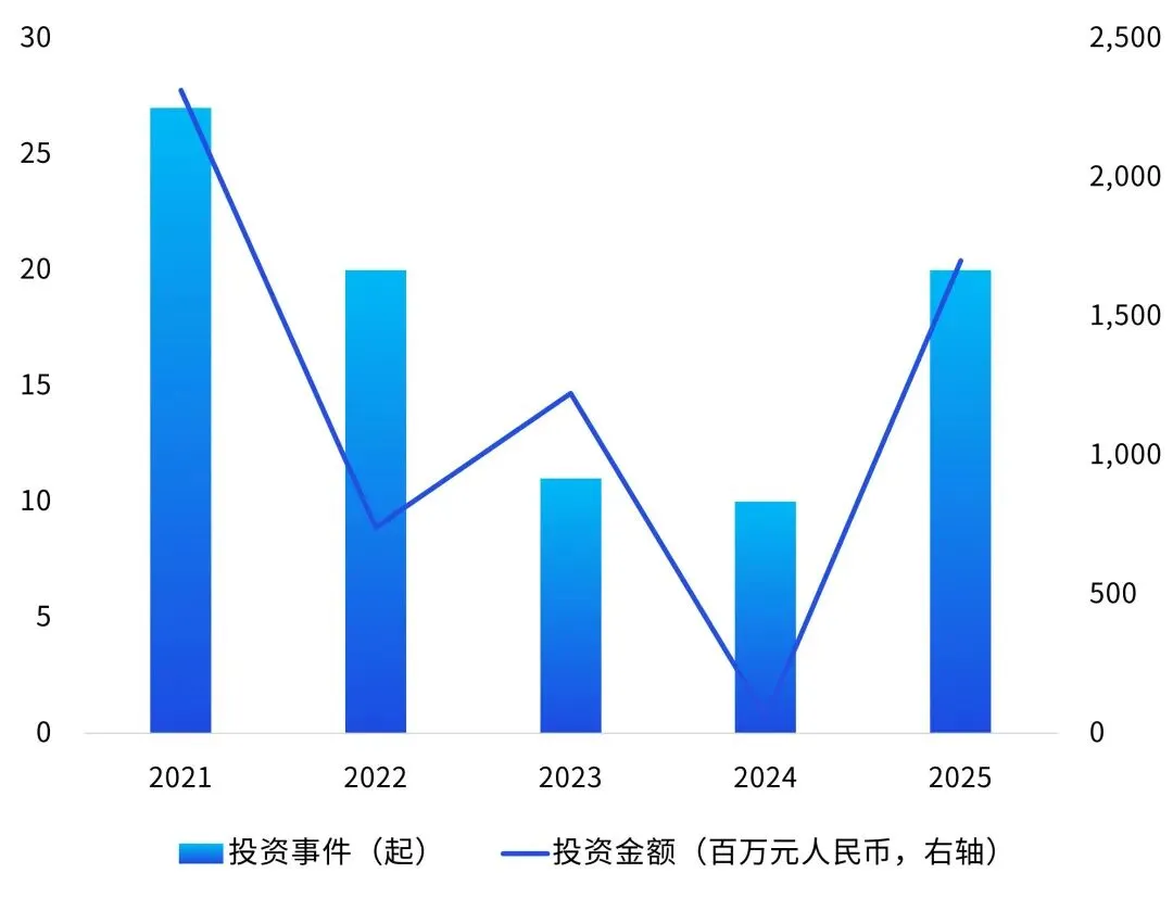 图2:2021年—2025年潮玩行业投融资情况(单位:起;百万元,右轴)
