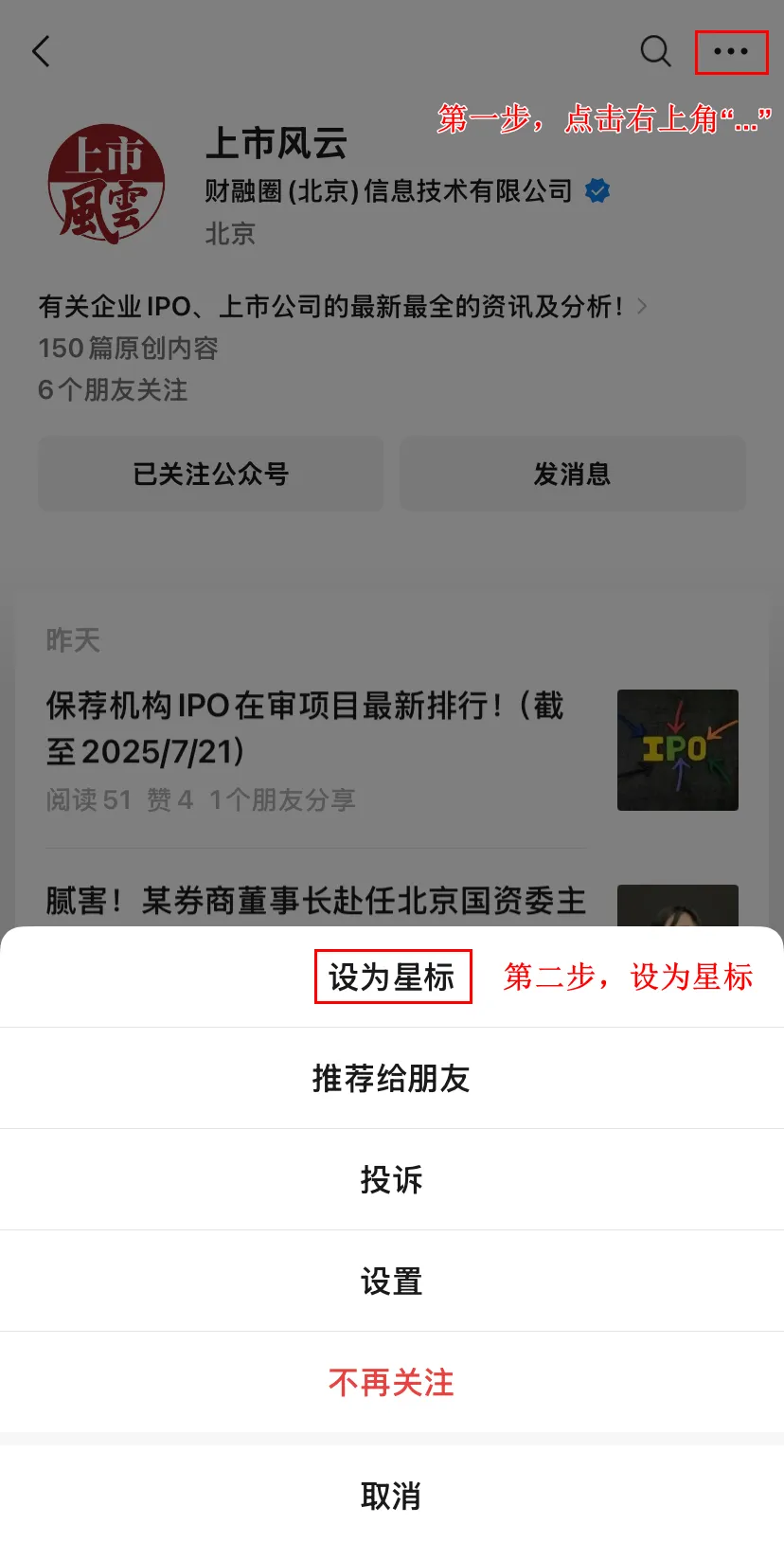 操作方法:点击文首蓝字关注【上市风云】,进入主页后点击右上角菜单栏,设为星标!