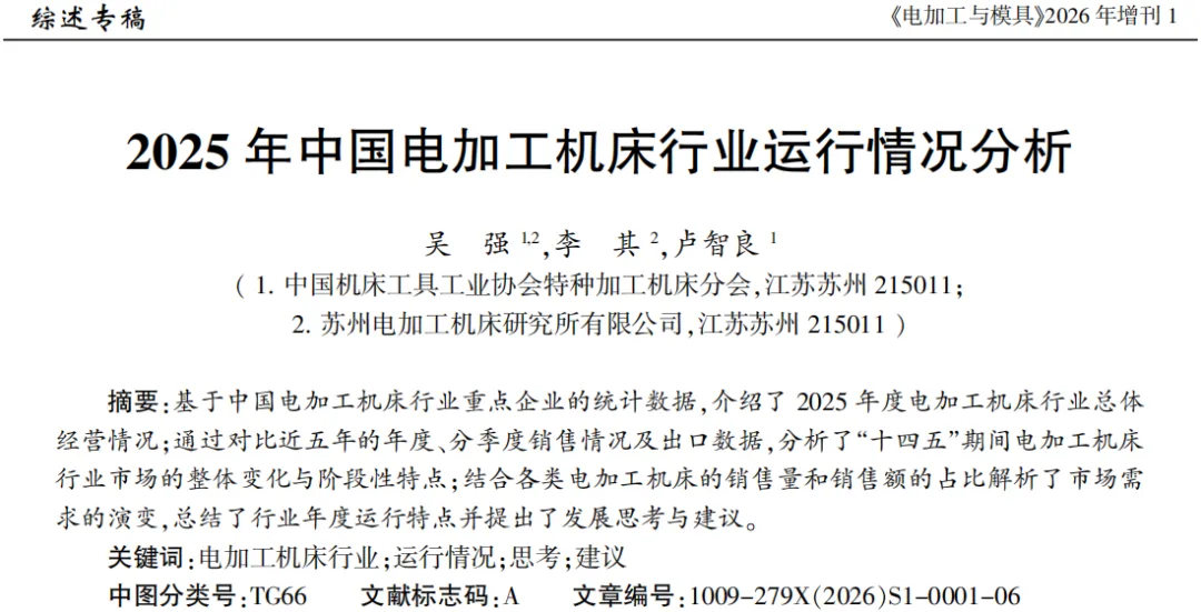 2025年是不平凡的一年,既是“十四五”规划的收官之年,也是“十五五”规划谋篇布局之年。回望2025年,在地缘政治冲突加剧、世界经济复苏动能不足、全球贸易格局深度调整的复杂环境下,中国深入贯彻落实党中央、国务院决策部署,实施更加积极有为的宏观政策,坚定不移贯彻新发展理念,国民经济运行顶压前行、向新向优,高质量发展取得新成效,圆满实现经济社会发展主要目标任务。在2025年度,中国电加工机床行业紧跟国家总体发展形势,在挑战中应对、在转型中提质、在创新中稳进,纵深推进了电加工机床行业的智能化、绿色化、融合化发展,进一步夯实高质量发展的基础,并加快实现新型工业化的步伐。