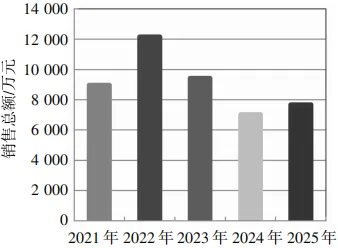 在整个“十四五”时期,如图3和图4所示,电加工机床的年度销售量和销售额走势呈现了近似V字形的曲线变化。由图3可见,2021年的电加工机床销售量处于最高位,而后有所下滑,至2023年到达曲线谷底,之后扭转下滑趋势,经过连续两年的回升后,至2025年基本恢复到2022年的水平。由图4可见,近五年的电加工机床销售额走势与销售量走势大致相仿,其中2021年和2022年的销售额处于五年内的平均水平;2023年的销售额最低;2024年的销售额迎来恢复性增长;2025年的销售额实现跳跃式增长并达到五年中的最高点。