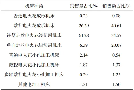 表1 2025年各类电加工机床的销售量和销售额占比