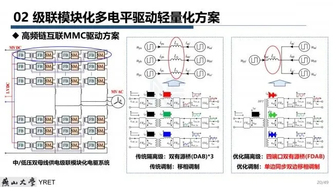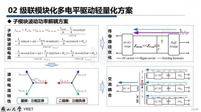 摘要:传统级联模块化多电平中压电机驱动变流器存在体积庞大、重量过高的痛点,子模块电容重量占比超70%,成为行业技术瓶颈。本研究针对该问题,从波动功率机理出发,提出基于波动功率解耦的轻量化新思路,通过DC/DC级调制优化与硬件电路设计,实现波动功率自然解耦,大幅缩减电容需求,最终系统体积相比传统方案减小45.6%,同时配套实现了内外部共模电压抑制,优化系统性能。该研究为中压电机驱动领域的轻量化技术升级提供了理论与方案参考,为工业电力电子从业者提供技术支撑。