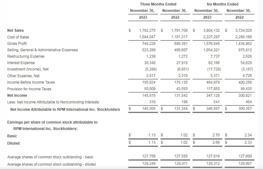 财报|RPM公布2024年上半年财报,净销售额创历史新高