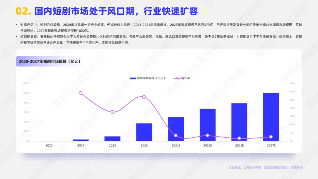 • 市场规模持续爆发:2023年中国短剧市场规模已达373亿元,预计2027年将突破1000亿;海外短剧应用市场虽处早期,2023年仅0.6亿美元,但预计2026年将飙升至6亿美元,年复合增长率超100%。