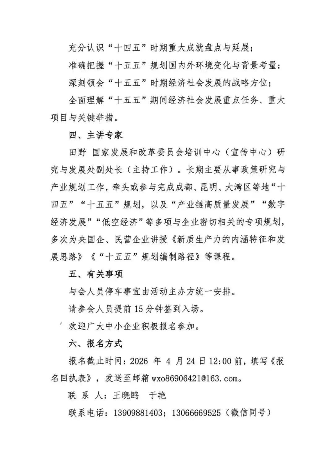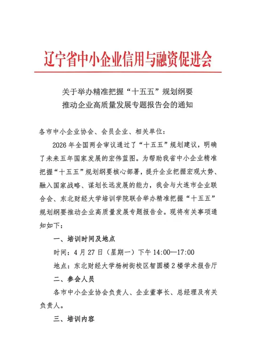 关于举办精准把握“十五五”规划纲要推动企业高质量发展专题报告会的通知
