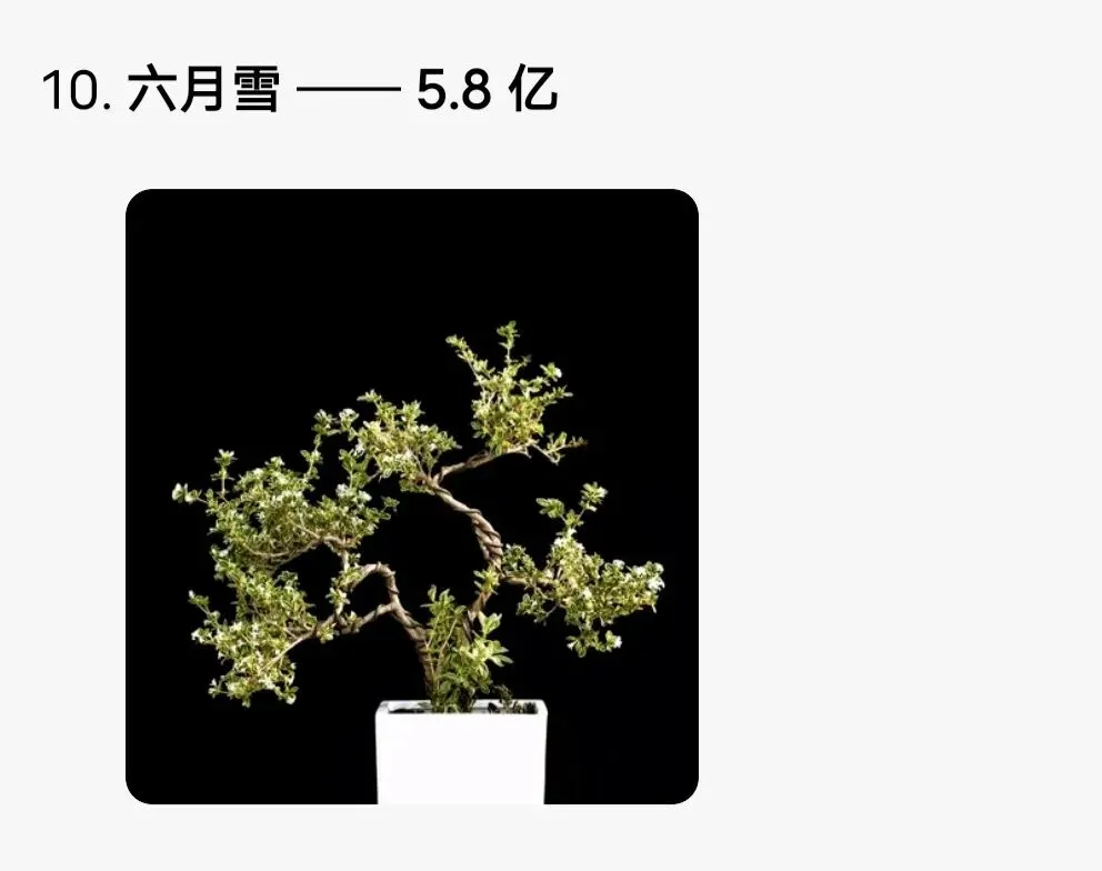 三角梅、榕树、六月雪等品种,热度也维持在6至10亿。