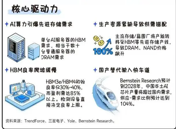 本轮存储周期的涨价,从2024年末就已启动:AI服务器对HBM、DDR5等高端存储的需求爆发,海外巨头(三星、SK海力士)又主动减产通用型DRAM,导致供给收缩。