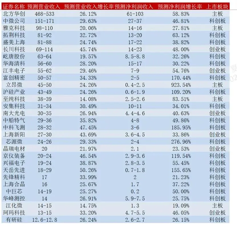 (4)结合多家机构预测,2026年半导体设备、材料企业的业绩分化明显,但整体向好,呈现“头部爆发、腰部强劲”的格局: