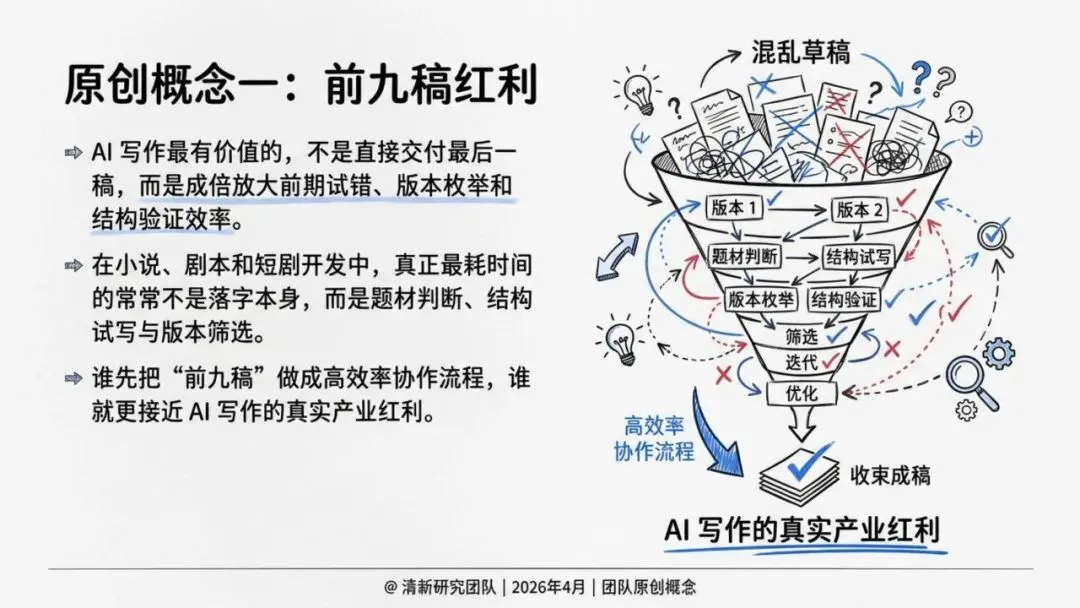 “前九稿红利”:AI最有价值的不是直接交付最后一稿,而是成倍放大前期试错、版本枚举和结构验证的效率。