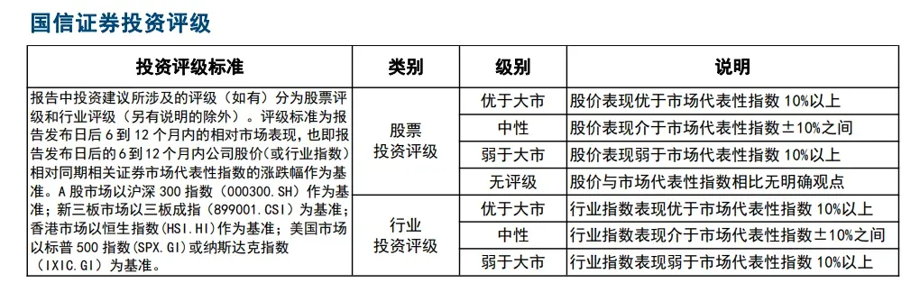 本报告版权归国信证券股份有限公司(以下简称“我公司”)所有,仅供我公司客户使用。未经书面许可任何机构和个人不得以任何形式使用、复制或传播。任何有关本报告的摘要或节选都不代表本报告正式完整的观点,一切须以我公司向客户发布的本报告完整版本为准。本报告基于已公开的资料或信息撰写,但我公司不保证该资料及信息的完整性、准确性。本报告所载的信息、资料、建议及推测仅反映我公司于本报告公开发布当日的判断,在不同时期,我公司可能撰写并发布与本报告所载资料、建议及推测不一致的报告。我公司或关联机构可能会持有本报告中所提到的公司所发行的证券头寸并进行交易,还可能为这些公司提供或争取提供投资银行业务服务。我公司不保证本报告所含信息及资料处于最新状态;我公司将随时补充、更新和修订有关信息及资料,但不保证及时公开发布。
