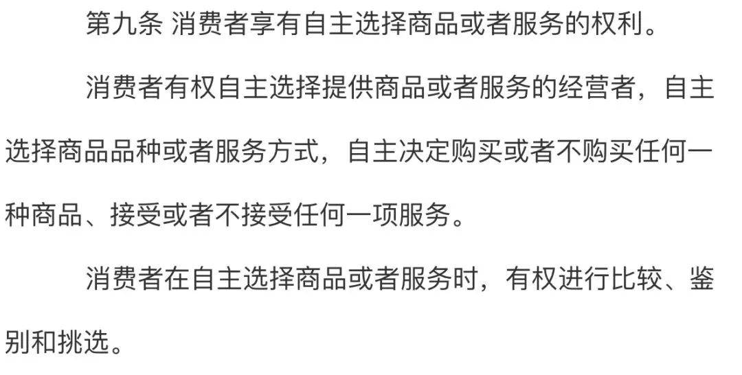 “消费者享有自主选择商品或者服务的权利”。
