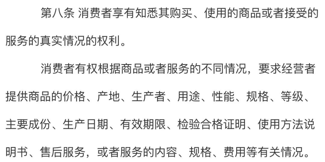 “消费者享有知悉其购买、使用的商品或者接受的服务的真实情况的权利”。