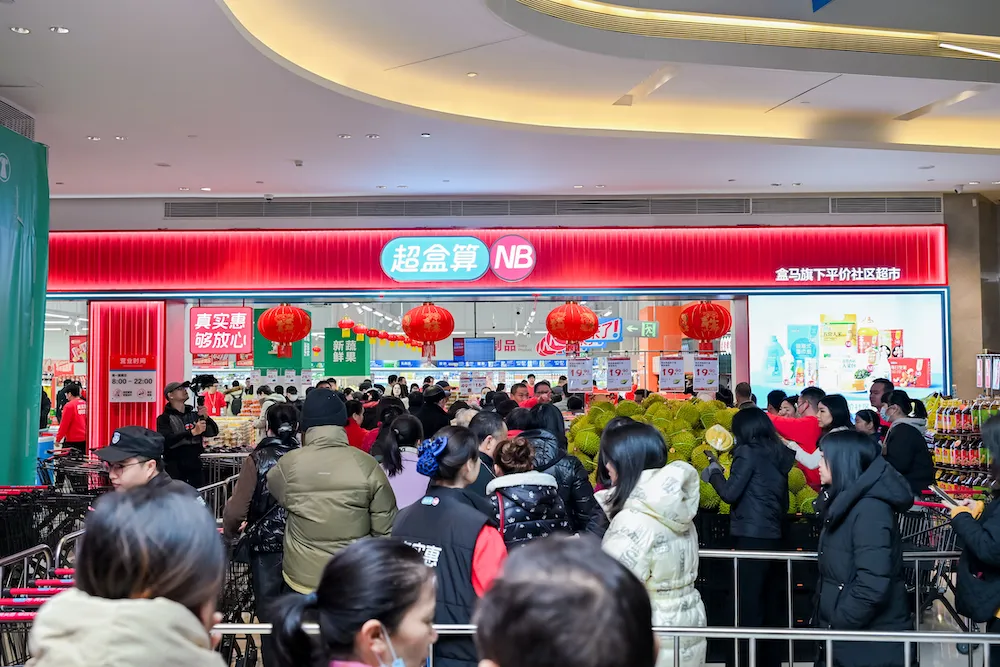 作为盒马鲜生大店之外独立发展的业务体系,超盒算NB以“社区折扣店”的崭新定位,在短短三年多的时间里,突破400家门店。门店面积600~800平方米,约1500款商品涵盖生鲜、3R、标品、冻品,自有品牌销售占比达60%,覆盖"开火做饭、即食即烹、休闲悦己、居家日用"四大消费场景。今年1月起,超盒算NB走出江浙沪包邮区,先后进入华南东莞、深圳、广州、佛山4座新城。截至目前,超盒算NB全国门店已超400家,预计2026年达到600家。4月,超盒算NB宣布将于5月15日在台州、宿迁、合肥三城11店齐开,均是首次进入这三个城市。