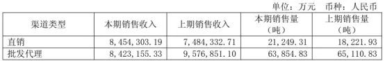 批发代理渠道营收842亿,同比下降12.05%,毛利率87.86%,直销渠道营收845亿,同比增长12.96%,毛利率94.58%,第一次,直销渠道营收超越了批发代理渠道。