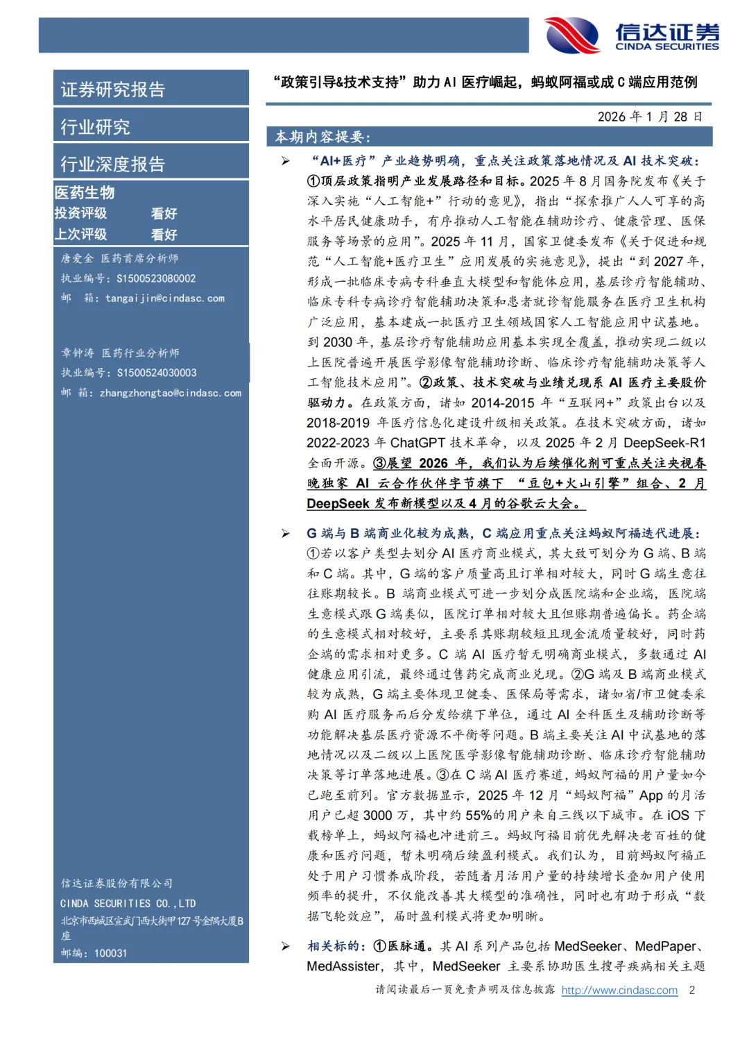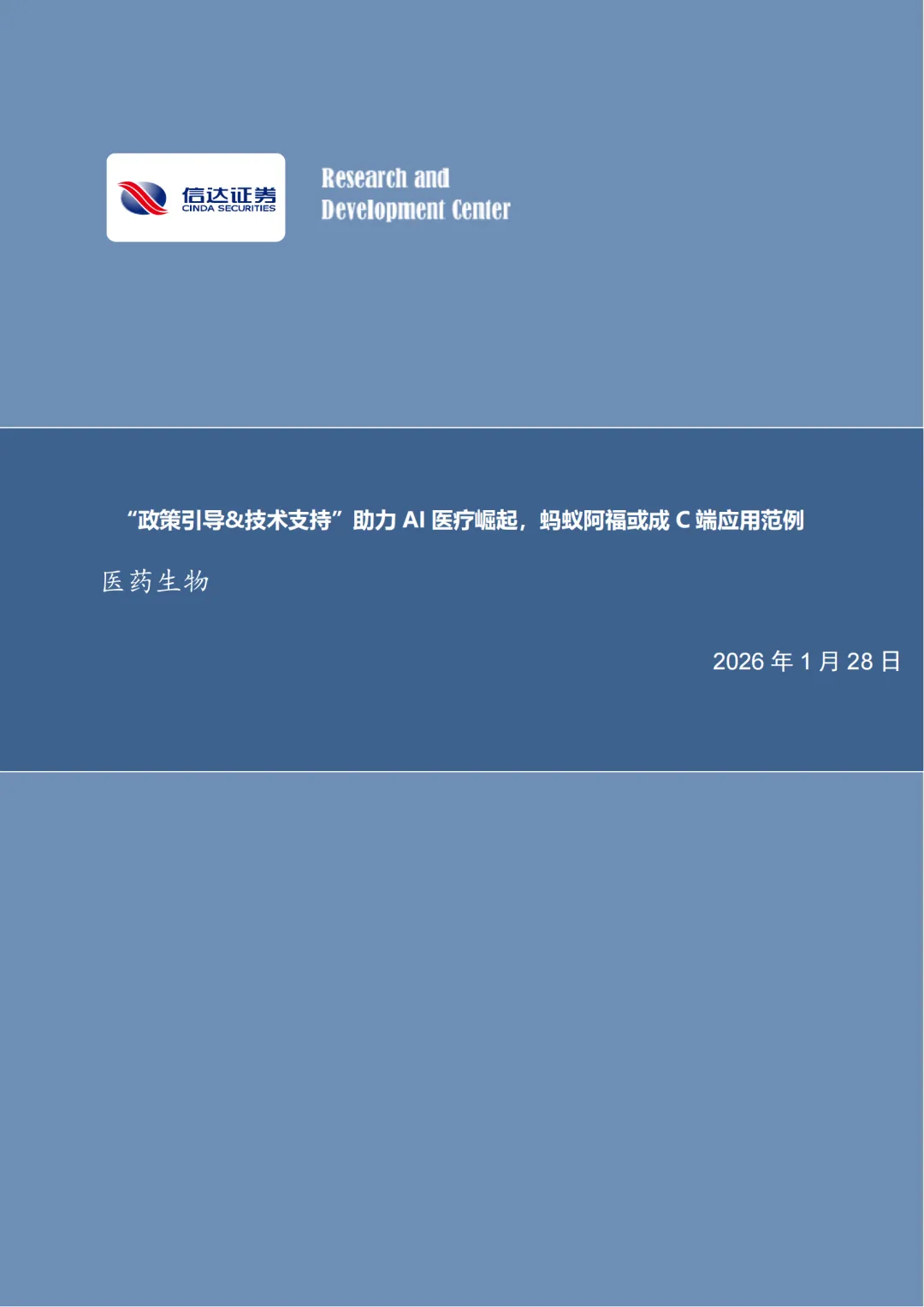 下载报告:医药生物行业:“政策引导、技术支持”助力AI医疗崛起,蚂蚁阿福或成C端应用范例