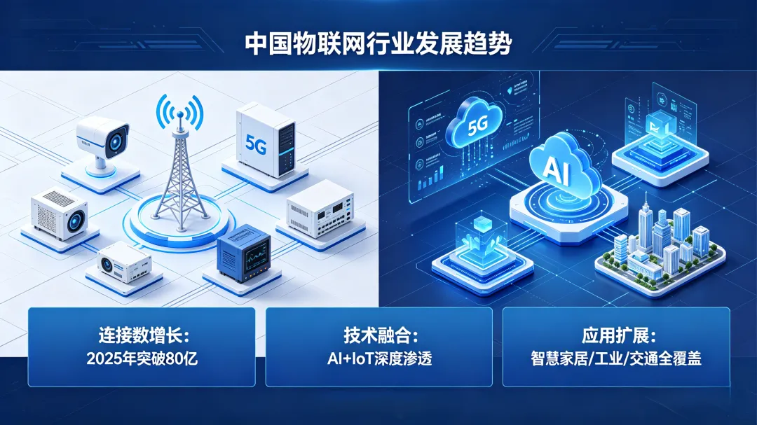 技术突破则体现在5G RedCap(轻量化5G)商用:2024年华为、高通推出低成本模组,终端价格大幅下降。传感器技术、无线通信技术、云计算技术和大数据技术的日益成熟,推动了物联网系统的智能化水平不断提高,进一步深化了物联网的应用。此外,5G和人工智能(AI)的深度融合也为物联网的发展提供了新的动力。