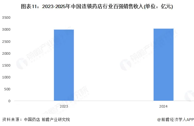 5、中国连锁药店百强收入:达到3042亿元
