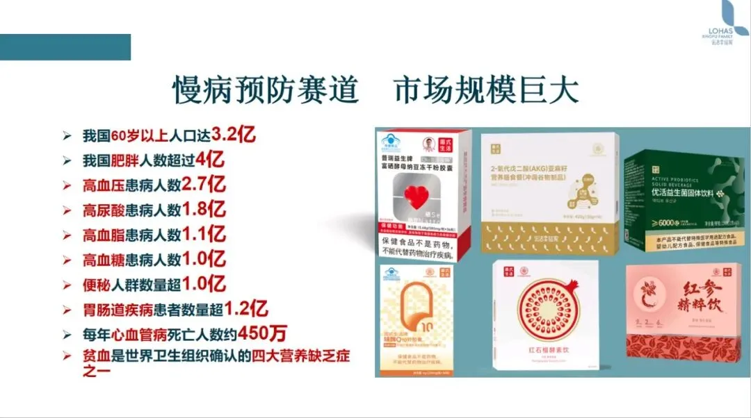 我们国家正在进入肥胖化、老龄化的这种社会,未来社会的中坚力量会逐渐往上移,国家绝对不允许中坚力量陷入了亚健康这个状态里面,所以每一个家庭都必须有一个懂健康的人,这是一个不可逆的趋势。