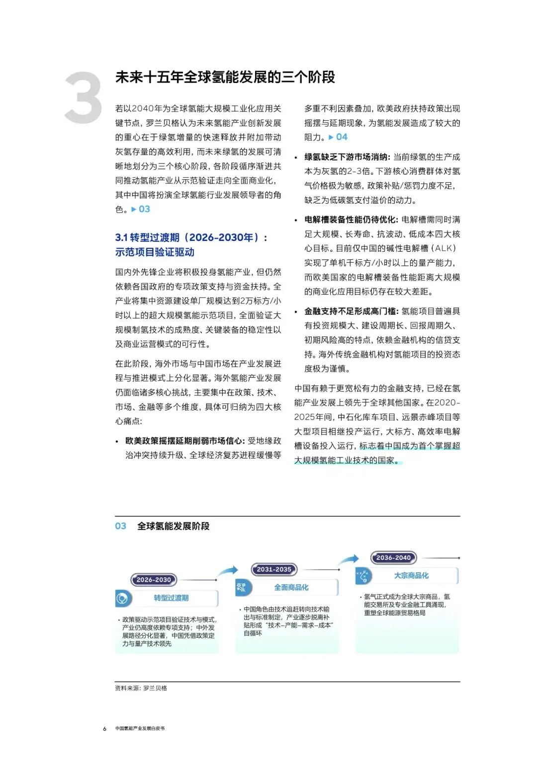 本白皮书由罗兰贝格联合重塑能源发布,系统梳理了“十五五”开局之年(2026年)中国氢能产业的核心图景。报告指出:氢能正从示范验证迈向全面商业化,中国凭借全球领先的绿电成本、完备产业链及央国企引领,已率先实现区域性项目落地。但产业仍面临制氢成本与下游支付意愿差距大、基础设施滞后、技术路线不收敛等五大挑战。书中深度剖析了上海氢能交通、山西副产氢利用、华电达茂旗绿氢一体化等标杆案例,提炼出“就地消纳、以销定产”“央地协同多元消纳”等可复制的成功模式。面向未来,报告呼吁政府精准施策、企业工程化降本、学界走出实验室协同攻关——为中国巩固全球氢能领导者地位提供战略路径。适合能源从业者、政策制定者及投资机构深度阅读。