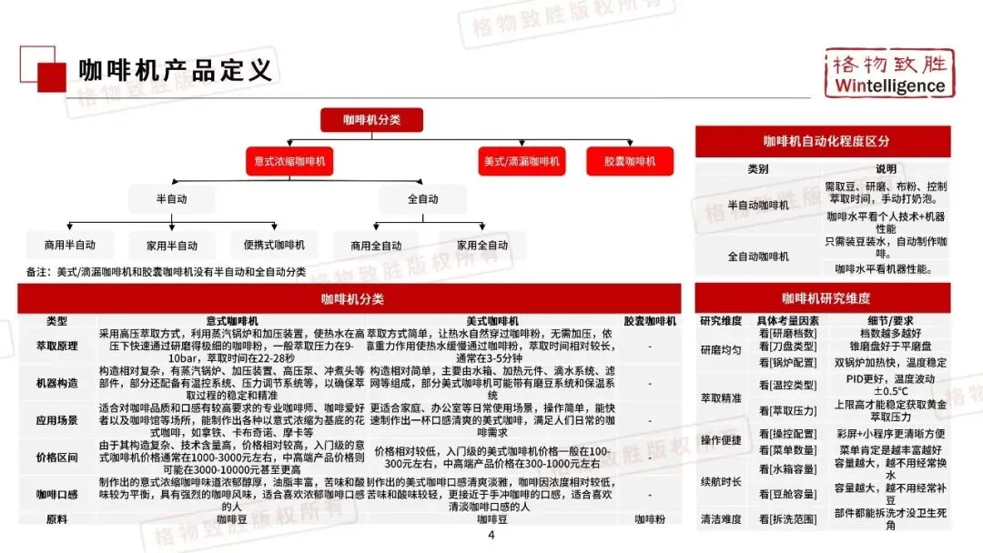 自动化程度上,全自动咖啡机增速远超半自动,大众对便捷、稳定的需求推动其成为主流,半自动因操作门槛高、效率低增长受限。
