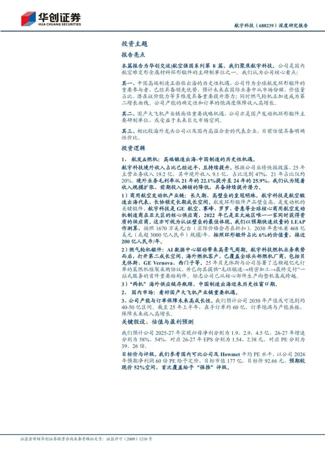 回复暗号:航宇科技(688239)深度研究报告:航发燃启,锻造寰宇——华创交运_航空强国系列研究(八)-260411-华创证券-47页
