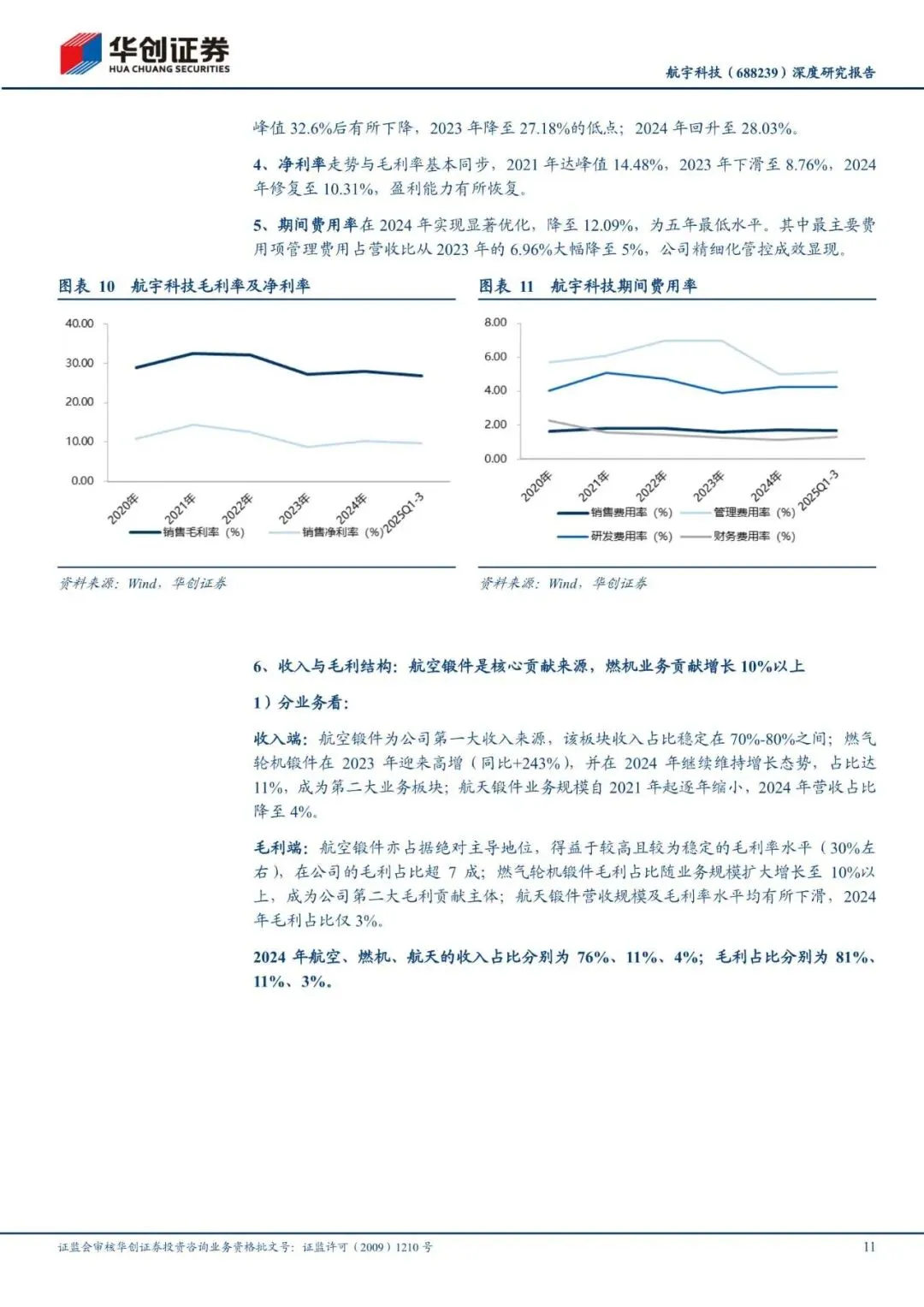 航宇科技:国内航空难变形金属材料环形锻件的主研制单位之一,公司产品以航空发动机锻件为主,亦涵盖燃机、航天等高端装备领域。其中,航空锻件是核心收入利润贡献来源(占收入 70-80%,毛利超 7 成),燃机业务贡献增长,2024 年营收占比提升至 10%以上。25 年快报公司收入 20 亿,归母利润 1.9亿,剔除子公司亏损及商誉减值影响后为 2.1 亿,同比增 11%。