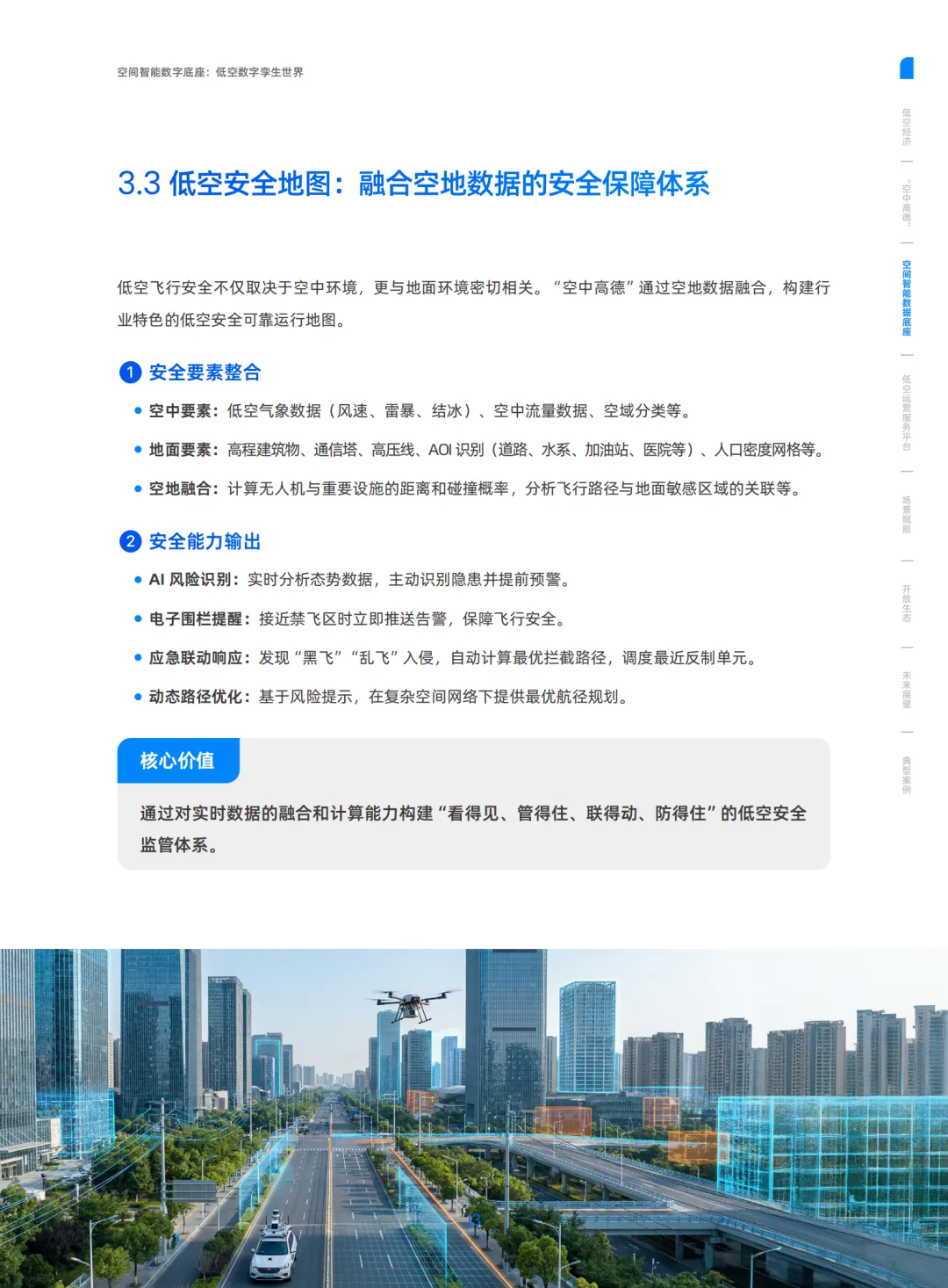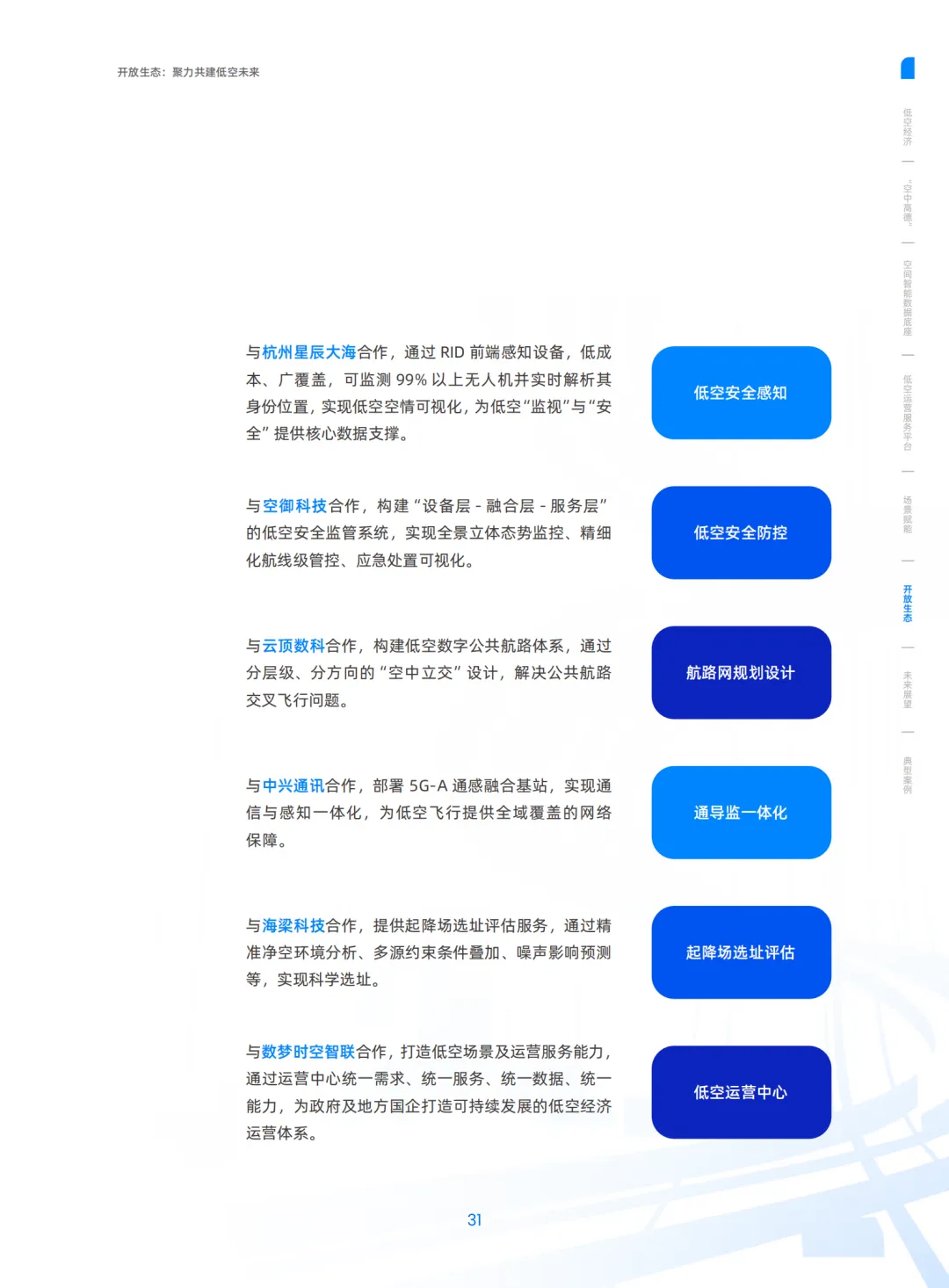 打造低空数字孪生,实现空域要素数字化、空域网格量化、低空安全地图、空间计算引擎,并联合伙伴建成通导监气一体化感知网,解决 “安全飞、有序飞”。