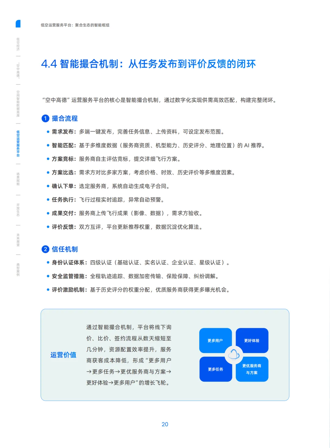 面向政府(低空治理 OS)、企业(低空即服务 LaaS)、个人(低空服务入口)提供全流程服务,通过智能撮合实现供需闭环,提升运营效率。