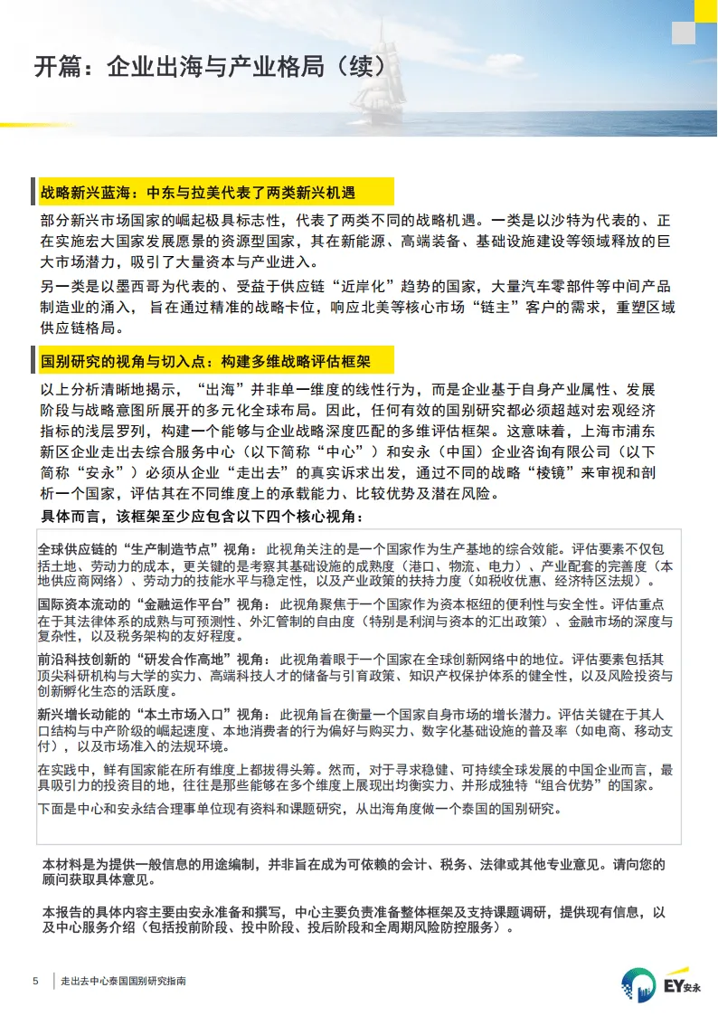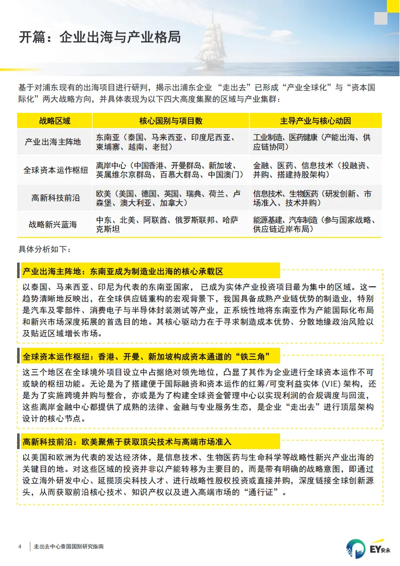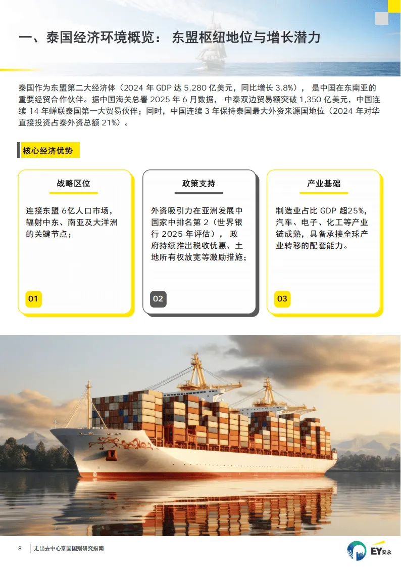 指南由上海市浦东新区企业走出去综合服务中心与安永联合编制,围绕中国企业赴泰投资合作展开全流程、多维度分析,明确泰国作为东盟核心市场的投资价值与实操框架,为企业全球化布局提供系统参考。