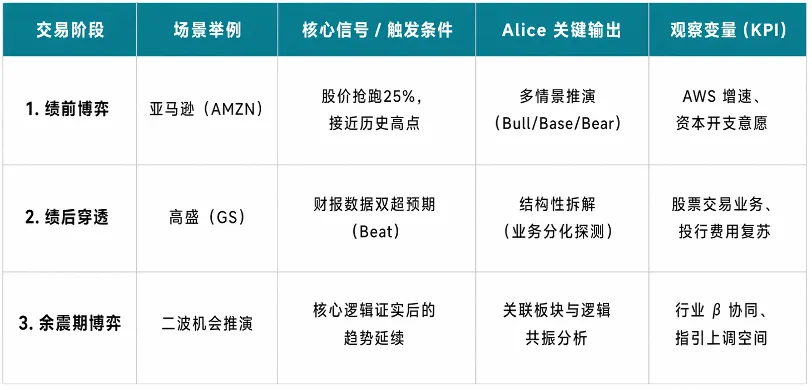 下面是一位美股事件驱动交易员用万得AI Alice 复盘财报季的三个场景,全部压缩成一张决策表。
