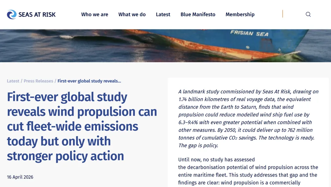 First-ever global study reveals wind propulsion can cut fleet-wide emissions today but only with stronger policy action