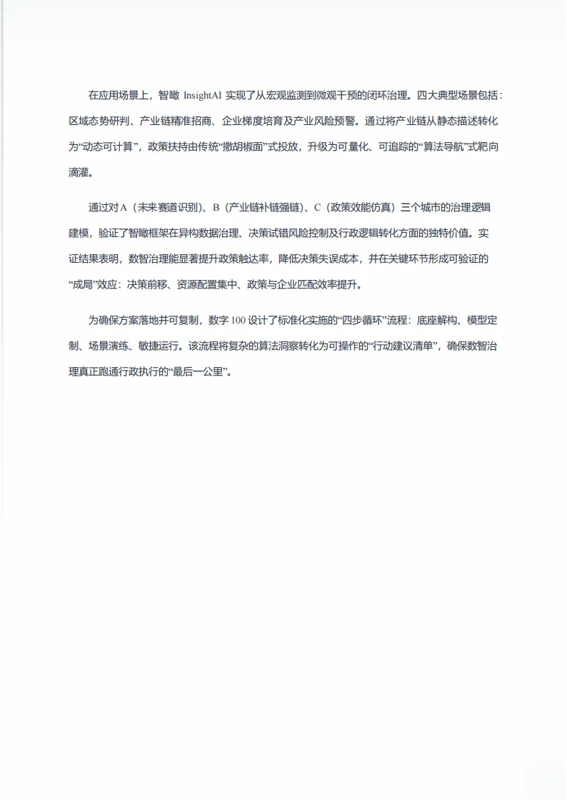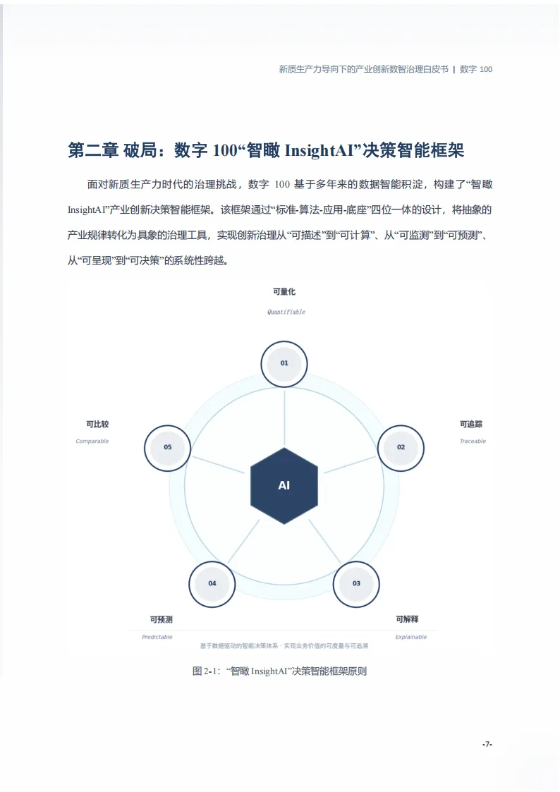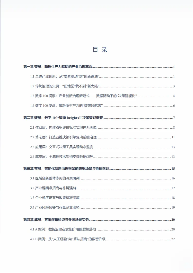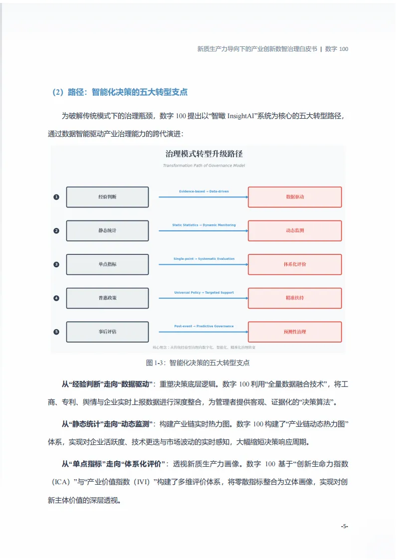 这份由北京数字一百信息技术有限公司发布的白皮书,聚焦新质生产力发展背景下产业治理的转型需求,提出以智瞰InsightAI为核心的数智治理解决方案,破解传统治理痛点,推动产业治理从经验驱动向数据智能驱动升级。
