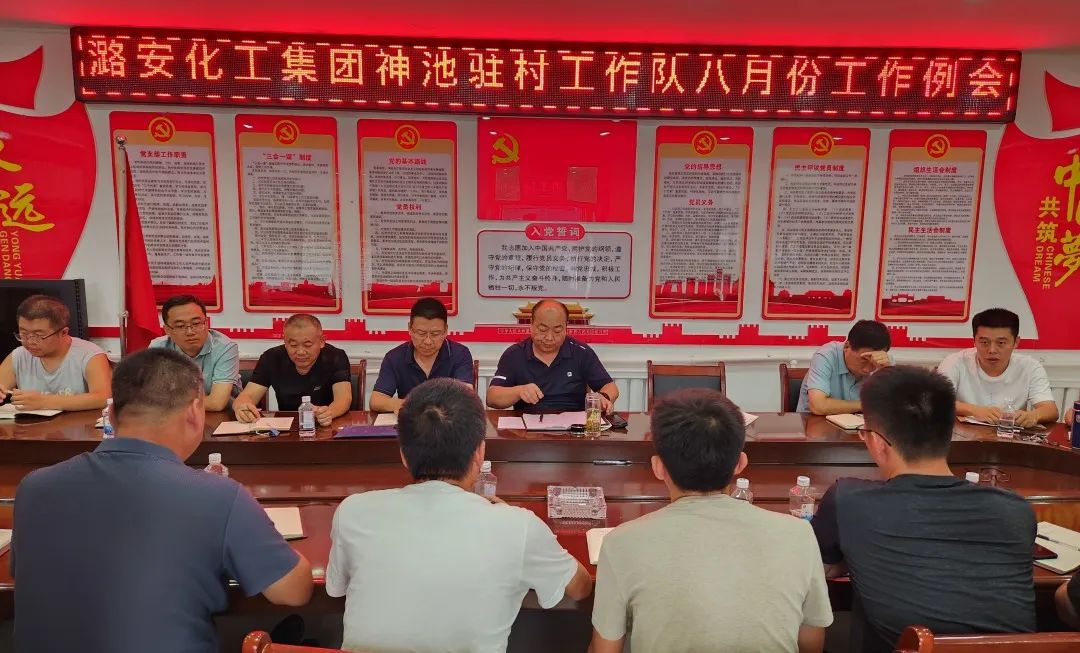 2023年8月17日,潞安化工集团神池驻村工作队在东湖乡青羊渠村召开八月份工作例会,包村队长冯瑞云主持会议,各队第一书记、驻村工作队员参加会议。