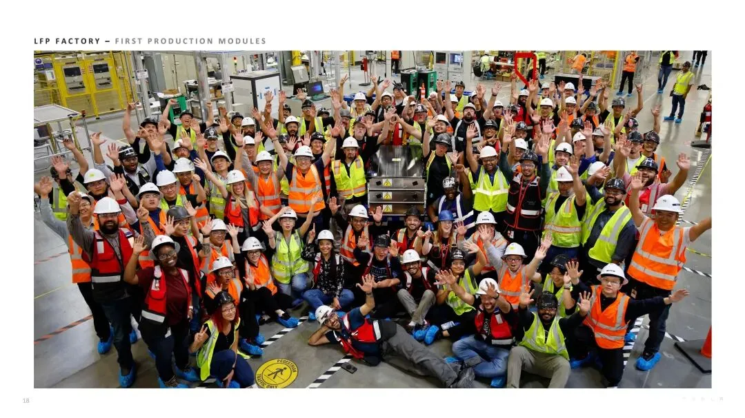 我们新的电池和材料工厂已开始产能爬坡,其中包括内华达的磷酸铁锂电芯,以及得州的正极材料和锂精炼产线。