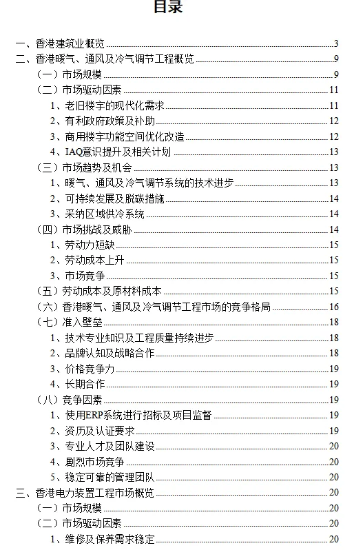《香港建筑工程行业深度分析报告(政策法规、发展现状、未来趋势、竞争格局)》原文WORD版:请回复“报告230”免费下载。