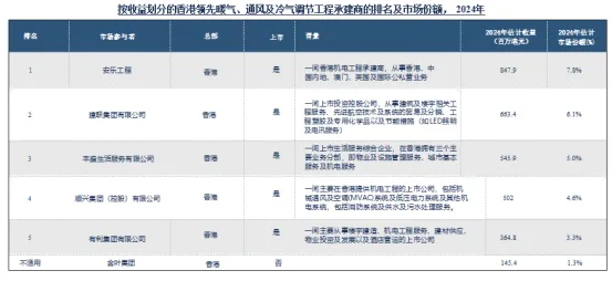 附注:截至2025年3月31日止年度,该排名的收益由提供暖气、通风及冷气调节工程所产生的收益编制而成。
