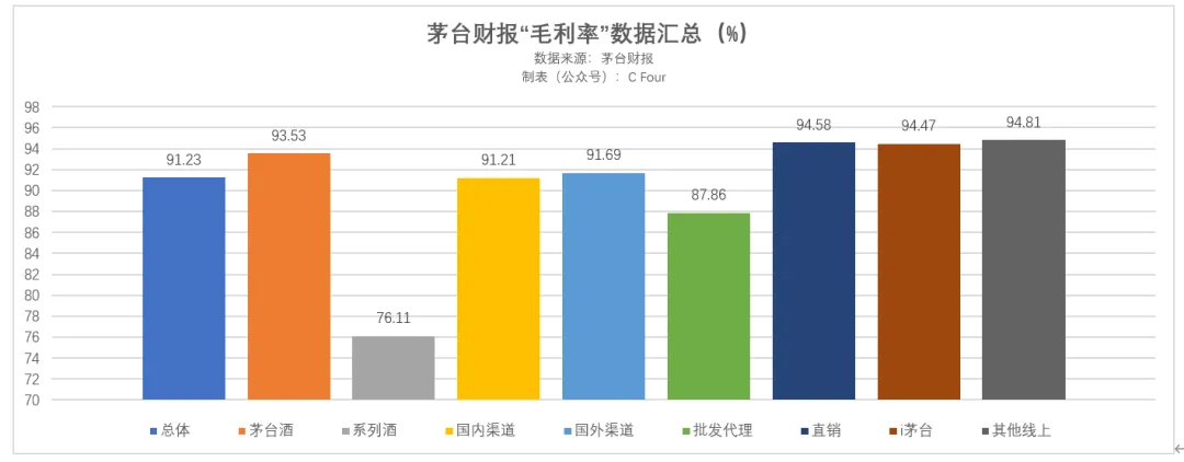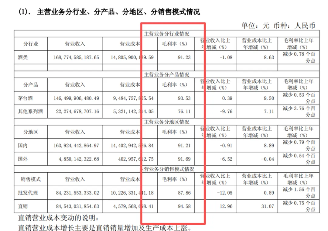 在上表中,i茅台与直销,属于两个数据维度,即“直销”包括了“i茅台”且“直销”的毛利率高于“i茅台”的毛利率——这意味着,还有“其他直销渠道”部分的毛利率高于i茅台。