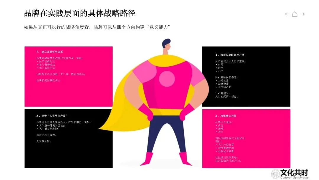 构建意义生产网络,文化是群体共同生产的,品牌不能再单方面生产文化,必须让用户共同参与,形成持续的文化生产网络。成为生活基础设施,某些机构会成为文化发生的基础条件,未来很多品牌真正的战略位置就是成为生活结构的一部分。占据意义解释权,谁能够解释世界,谁就拥有文化影响力。品牌要长期输出文化观点,输出生活方式定义,输出审美标准,成为一种文化解释者。