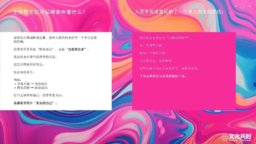 品牌需要成为人生意义系统的一部分。在人类学研究中,消费不仅是购买行为,而是意义实践。人们通过消费表达我是谁我属于什么文化我怎样生活。当主体性成为核心议题时,消费者更需要表达自我探索人生建立个人叙事。因此品牌如果想建立长期影响力,需要成为人生意义系统的一部分,而不是单纯产品供应者。