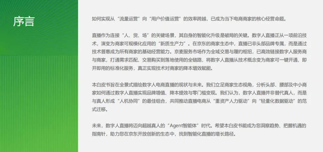 京东 × 艾瑞咨询联合发布《2026 数字人电商直播白皮书》,全景解读数字人从 “虚拟主播” 升级为新质生产力的全过程,明确行业已进入规模化、标准化、合规化新阶段,未来将迈向超越真人的 Agent 智能体时代。