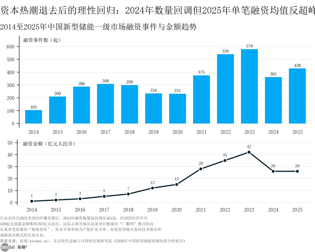 说实话,看到报告里的数据,我的第一反应也是焦虑。过去十年,中国储能领域一级市场融资额高达3,251亿元!特别是2021到2023年,市场简直疯了,年均融资事件超过490起,光2023年一年就吸金超过400亿。