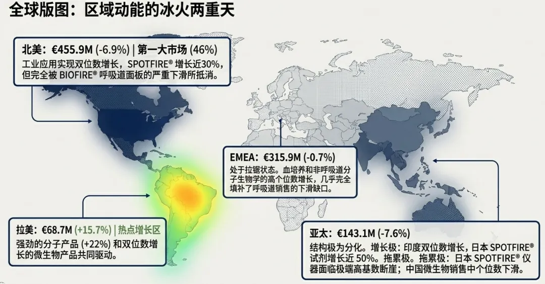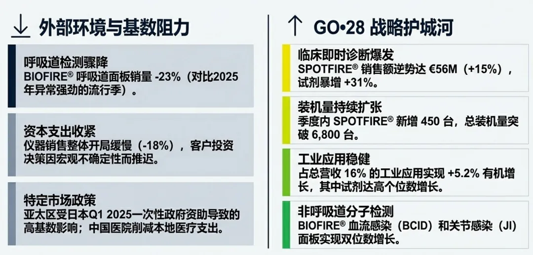 呼吸道检测需求回落:相较2025年同期高基数,本季流行病学温和,BIOFIRE®呼吸面板销售额大幅下降23%。