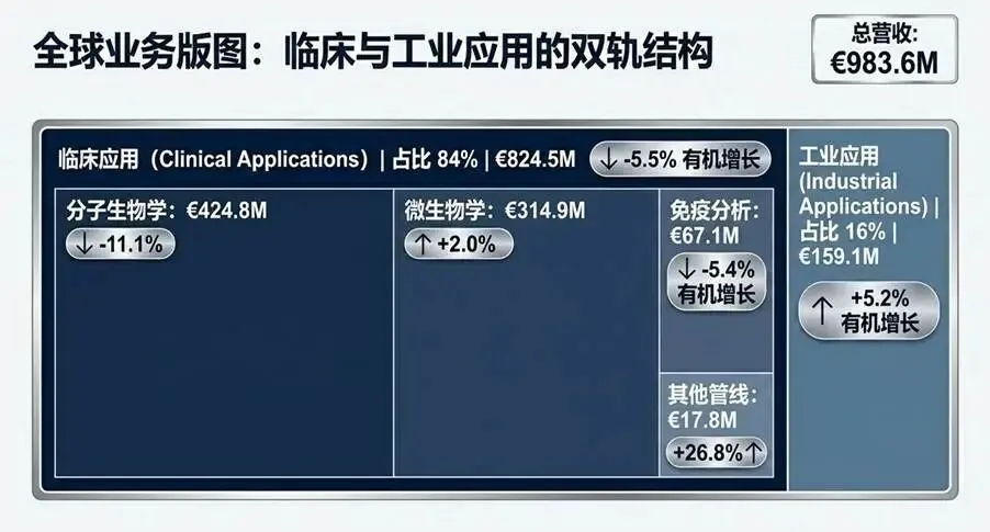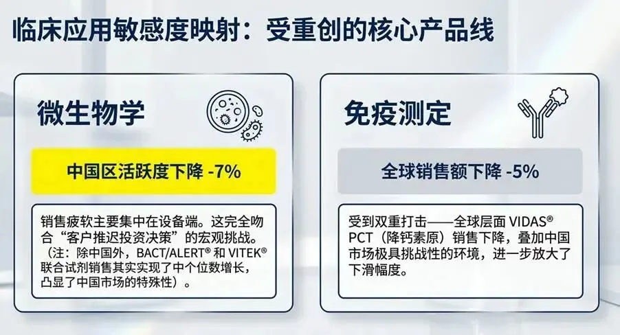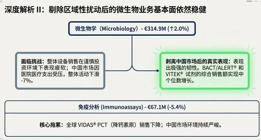 国内医疗机构预算收紧,设备投资与采购节奏放缓,直接导致微生物学业务同比下降7%。