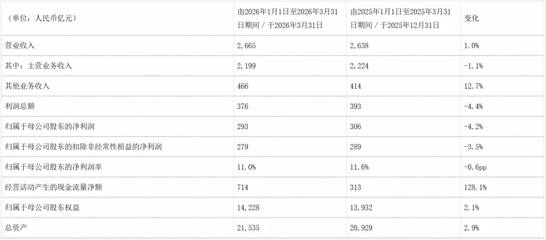 从已披露的财报数据来看,2026年Q1三大运营商营收呈现“一增两降”格局,利润端则集体承压。