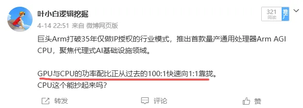 CEO陈表示cpu的密度在推理agent时代会大幅上涨,从目前的1:8,升到1:4,未来可能到1:1。